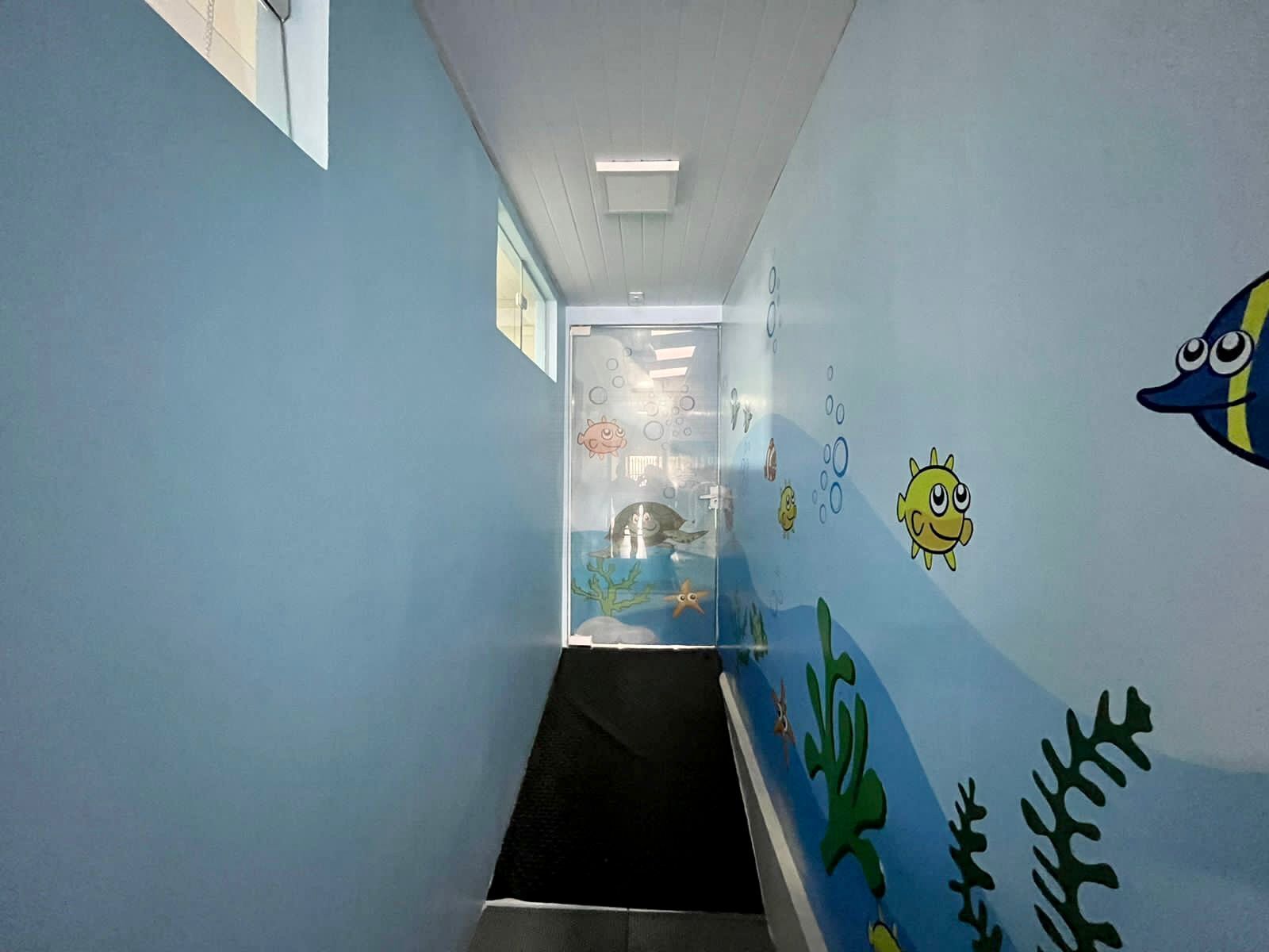 Piscina com 10 metros com duas raias com 2 mtrs cada.
